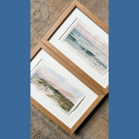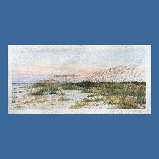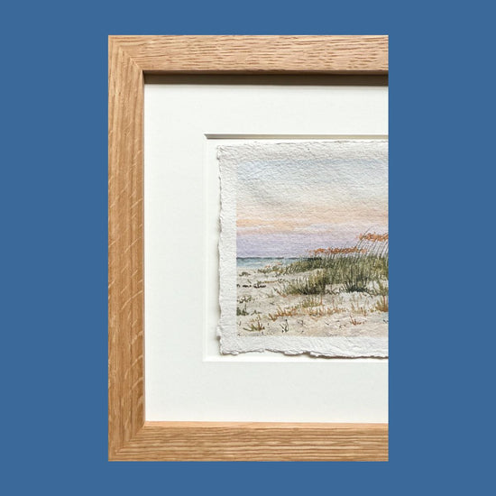 4"x9" (unframed) original acrylic painting on handmade cotton rag paper. Painting will arrive signed on the front bottom right corner. Painting comes FRAMED in a custom white oak frame and matted in an island style warm white mat.
