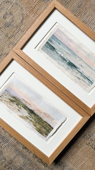 4"x9" (unframed) original acrylic painting on handmade cotton rag paper. Painting will arrive signed on the front bottom right corner. Painting comes FRAMED in a custom white oak frame and matted in an island style warm white mat.